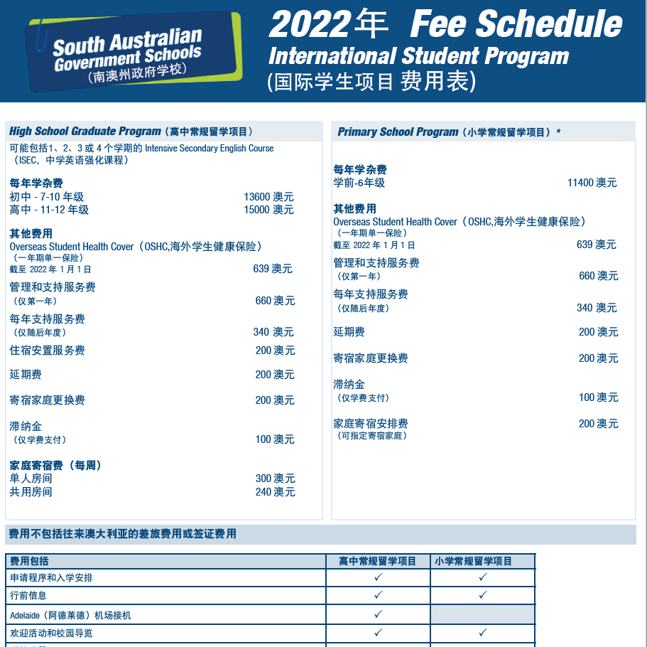 2022年国际学生学杂费标准