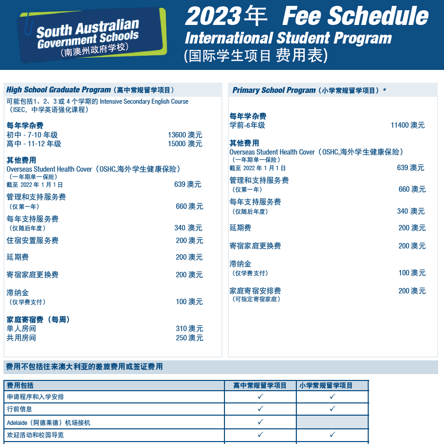 2023年国际学生学杂费标准